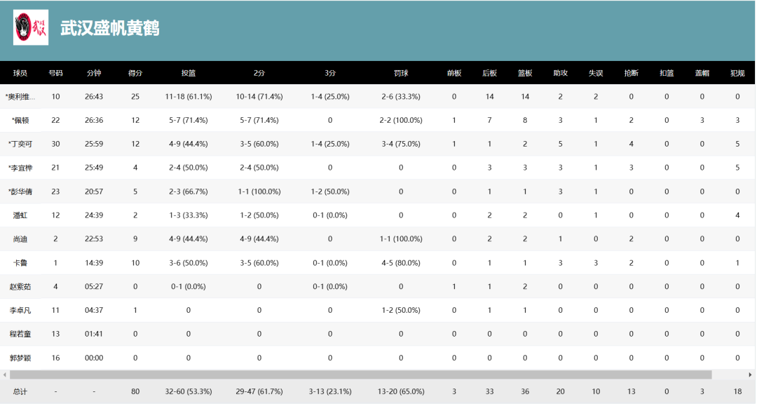 取胜的另一大关键是武汉盛帆本就雄厚的整体实力和日益流畅的整体配合。除奥利维耶外,武汉盛帆还有佩顿与卡鲁两位外援得分上双,丁奕可同样拿到12分5助攻,还有彭华倩、尚迪、李宜桦、潘虹……以国内球员为主的外线不仅打出了18比5的快攻得分,还送出了13比5的抢断数据,将对方两名小外防得苦不堪言——这两位球员场均得分均达到两位数,但本场加在一起只拿到10分。